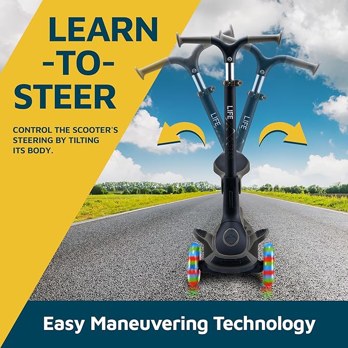 - SMOOTH RIDE, SAFE STOPS - Thanks to a durable polyurethane wheels and lean-to-steer technology, every glide feels silky-smooth. The anti-slip foot deck and wide front wheels provide superior stability, while the rear foot brake ensures easy stopping.