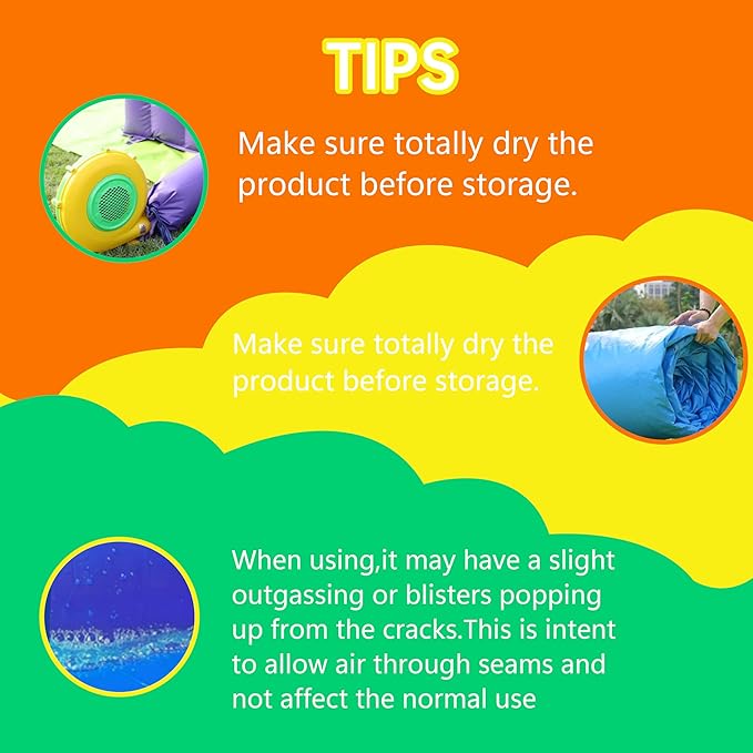 - 【 Best Gift 】 From summer pool parties to various outdoor carnivals, our water slide can give children a happy childhood! Climbing can promote children's physical coordination ability and make their reactions more agile. Slides of different lengths and slopes can help children master balance and speed, and exercise their physical coordination skills. This inflatable water slide is an excellent gift for every child!