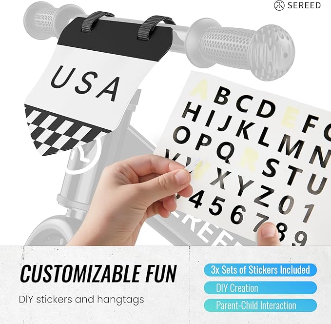 - Included Components : Toddler Balance Bike, Customizable Plate and Stickers, User Manual