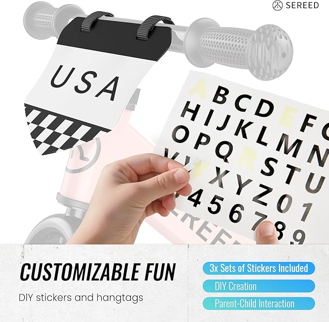 - Included Components : Toddler Balance Bike, Customizable Plate and Stickers, User Manual