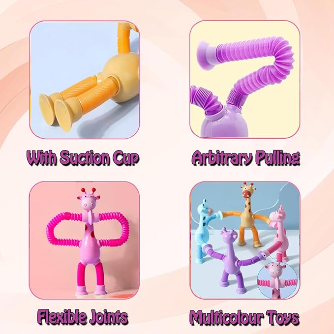 - 🤖【Safety Material】Stretchy giraffe suction toys are made of BPA and lead-free plastic,that are completely safe for kids and edges are smooth, can withstand a lot of fidgeting, popping, stretching, pulling and bending.It has sufficient toughness and durability.