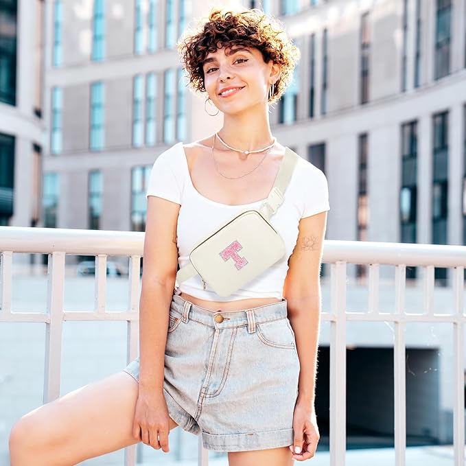 Gifts for Girlfriend, Girlfriend Birthday Gifts, Personalized Fanny Pack Crossbody Bag Belt Bag with Initial letters, Waist Packs with Adjustable Strap, Cute Preppy Girly Trendy Stuff (Cream, T)