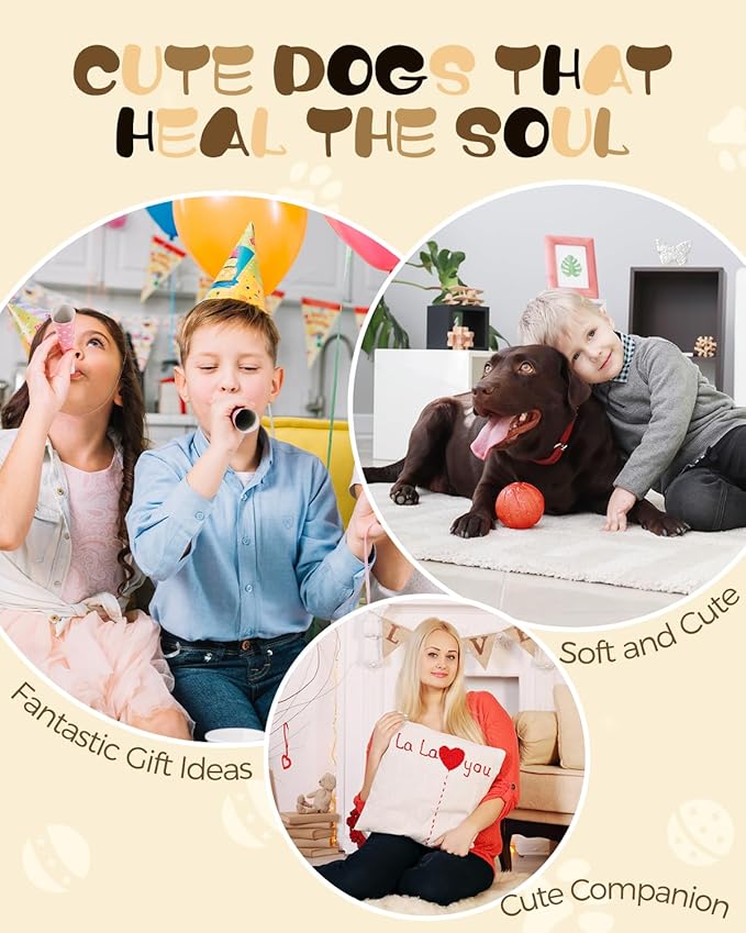- Versatile Gift for All Ages: Share joy with this child-friendly, durable puppy plush! A perfect gift for kids, teens, adults, or loved ones (boyfriend, girlfriend, wife, husband). Express your love with a symbol of happiness suitable for all ages