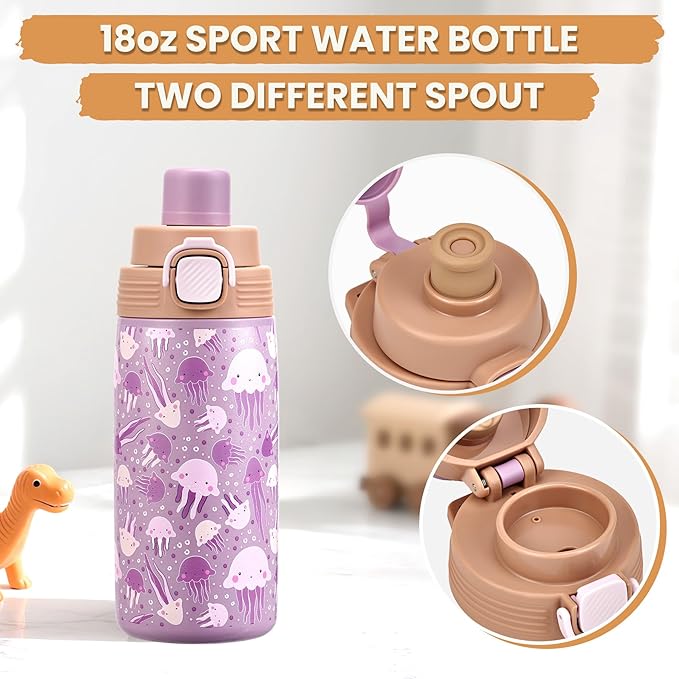 - Designed for Kids – Easy to Use & Fun to Carry: Kid-friendly latches make it easy for children to open and close on their own. The water bottle has a flip-top lid with spout for easy drinking and a soft silicone carrying loop. The bright dinosaur print adds fun and encourages kids to enjoy healthy meals anywhere.