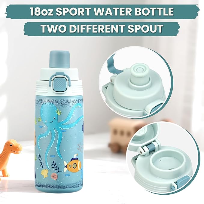 - Designed for Kids – Easy to Use & Fun to Carry: Kid-friendly latches make it easy for children to open and close on their own. The water bottle has a flip-top lid with spout for easy drinking and a soft silicone carrying loop. The bright dinosaur print adds fun and encourages kids to enjoy healthy meals anywhere.
