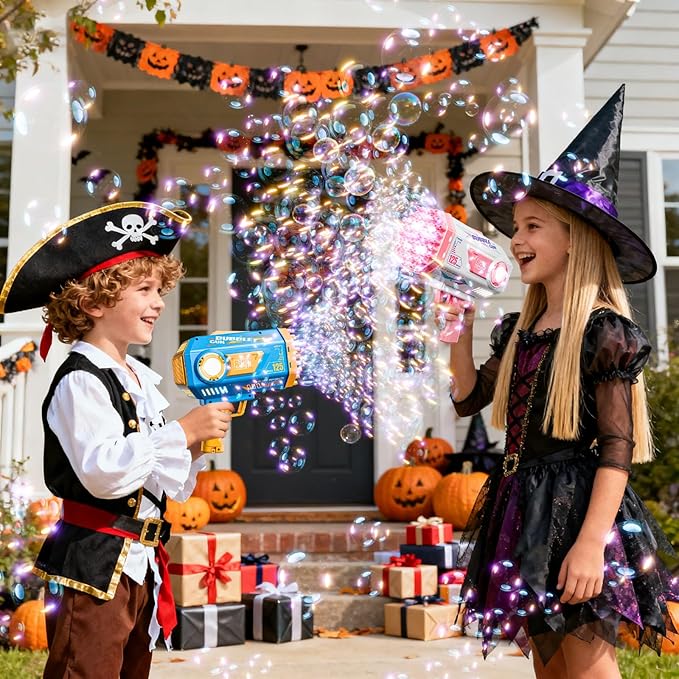 - SAFE & WELL MADE- BOMOCO Bubble Guns are made from nontoxic,ABS plastic with superior toughness and rust protection. There are won't be harmful to kids, toddlers ,pets etc. Safe and portable, easy to use and easy to clean. APPLICABLE AGE- boys, girls, kids over 3 4 5 6 7 8 9 10 11 12 years old.