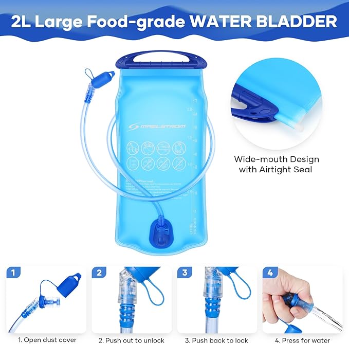- All-in-One Hydration Solution: Maelstrom hiking backpack with water bladder combines durable nylon construction (1.1 lbs total weight) with 4 storage pockets and an aluminum-lined bladder sleeve for leak-proof, insulated cooling—perfect for hydration backpack enthusiasts.
