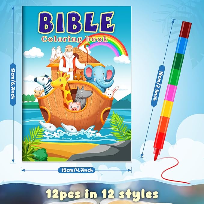 - Package Include: you will get 12 pieces of christian coloring books bulk and 12 pieces of stacking crayons.The quantity is enough to meet your DIY needs, kids will be very excited to see mini coloring books, color it right away, let your kids play all day long