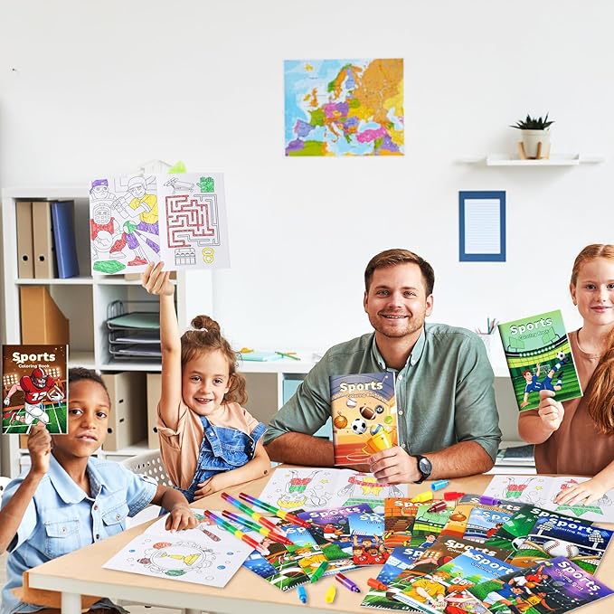 - Widely Applicable: these coloring books with colored crayons can be as a gift to your 4-16 child for the sports party favor, sports football basketball soccer baseball birthday goodies bags stuffer, sports party gifts, Classroom DIY crafts activities, car trips, restaurant and other travel etc