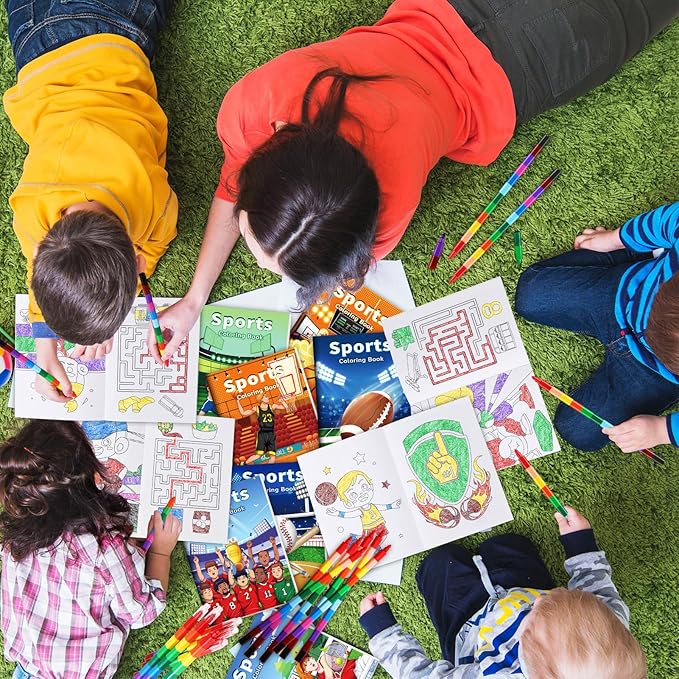 - Package Include: you will get 12 pieces of sports coloring books bulk and 12 pieces of stacking crayons.The quantity is enough to meet your DIY needs, kids will be very excited to see mini coloring books, color it right away, let your kids play all day long