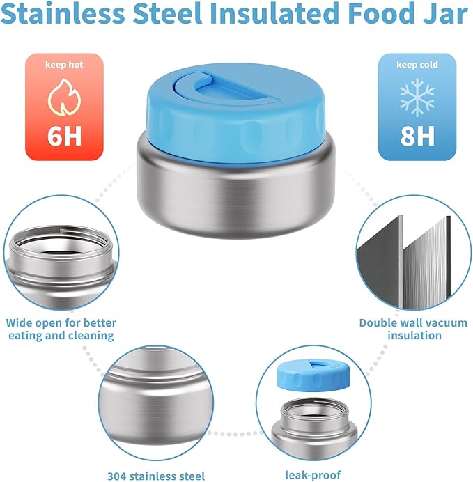 - Stainless Steel 9oz Insulated Food Jar: Keeps cold for 8 hours and hot for 6 hours. Kids thermo food container is perfect for soups, yogurt and more. Fits perfectly inside a bento box!