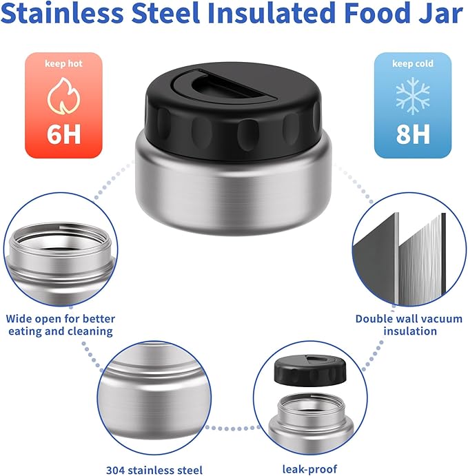 - Stainless Steel 9oz Insulated Food Jar: Keeps cold for 8 hours and hot for 6 hours. Kids thermo food container is perfect for soups, yogurt and more. Fits perfectly inside a bento box!