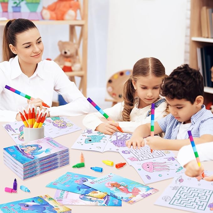 - Package Include: you will get 12 pieces of mermaid coloring books bulk and 12 pieces of stacking crayons.The quantity is enough to meet your DIY needs, kids will be very excited to see mini coloring books, color it right away, let your kids play all day long