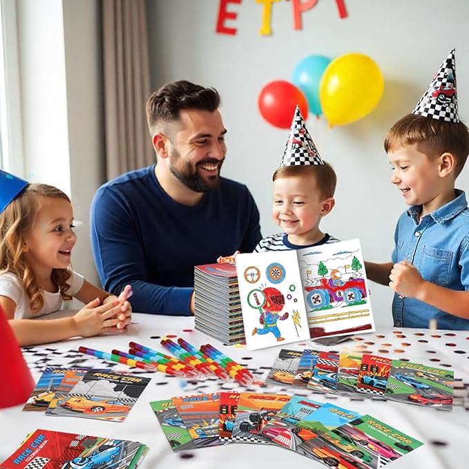 - Widely Applicable: these race car coloring books with colored crayons can be as a gift to your 4-16 child for the race car party favor, car wheels goodies bags stuffer, racing gifts, Classroom DIY crafts activities, car trips, restaurant and other travel etc