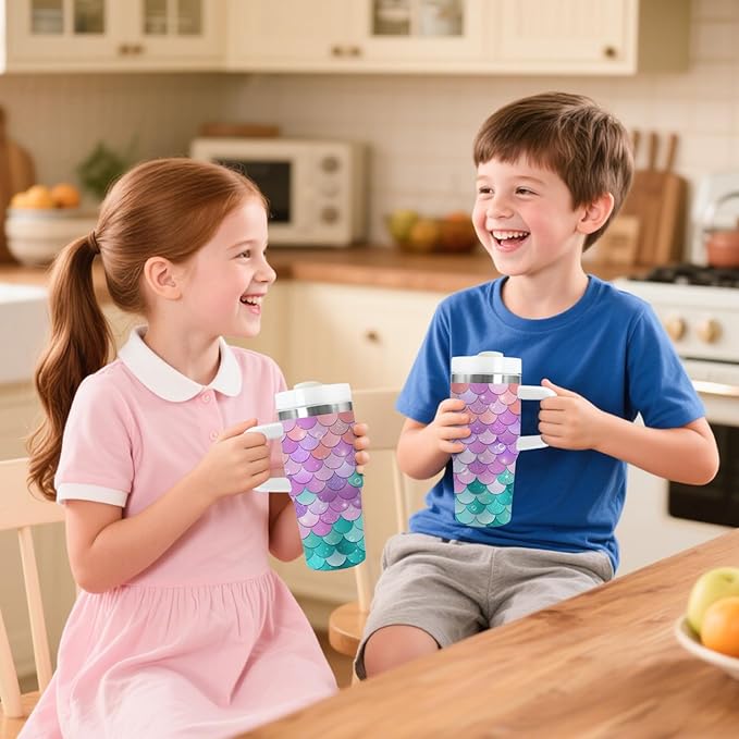 - 🐠 Stunning Fish Scale Design for Kids - This 14oz tumbler features a beautiful fish scale pattern with bright underwater colors, perfect for children who love ocean life and marine creatures. The shimmering aquatic design makes hydration exciting and fun