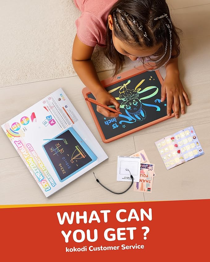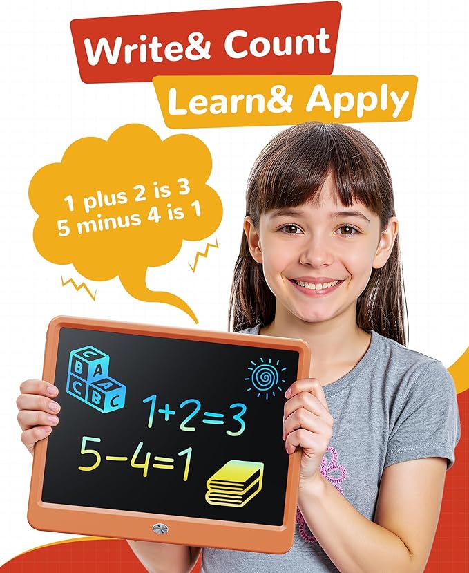 KOKODI LCD Writing Tablet, 12 Inch Colorful Toddler Doodle Board Drawing Tablet, Erasable Reusable Electronic Drawing Pads, Educational and Learning Toy for 3-6 Years Old Boy and Girls(Orange)