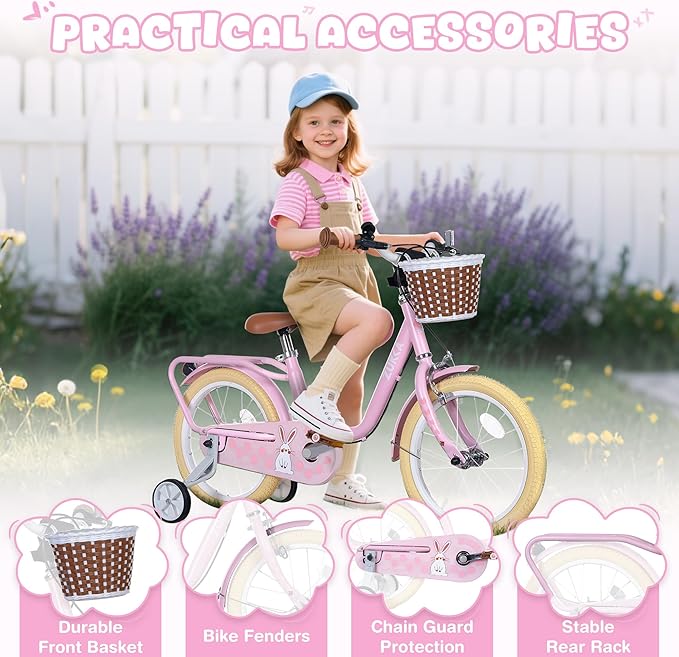 - Practical Storage Free Kid's Hands: The front basket can hold dolls, water cups, books etc, and the rear rack can carry schoolbags or small toys, meeting daily travel needs.