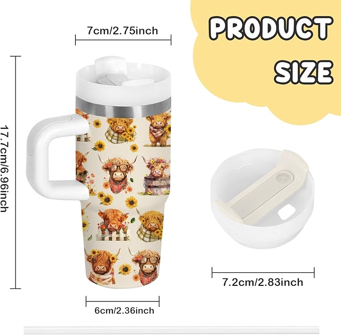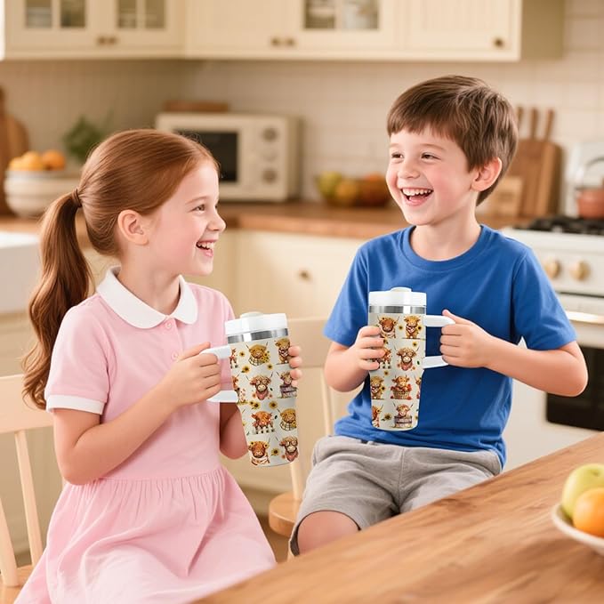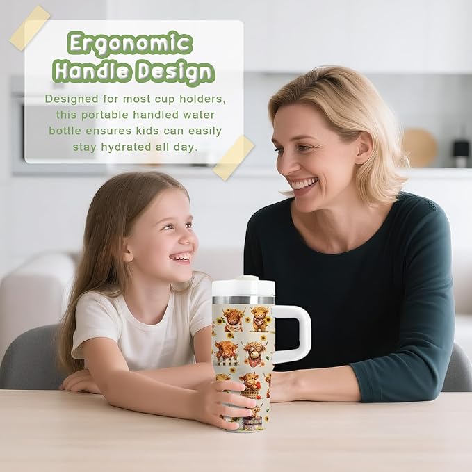 - 🐂 Adorable Highland Cow Design for Kids - This 14oz tumbler features charming highland cow designs with their signature shaggy coats and sweet look, perfect for children who love cute farm animals and countryside charm. The warm, rustic patterns make hydration a delightful experience