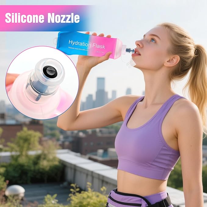 - Foldable running water bottle is easy to carry whenever empty or full. It is ideal for hydration running vest and hydration waist belt. Soft flask can be used by adults and children, men and women