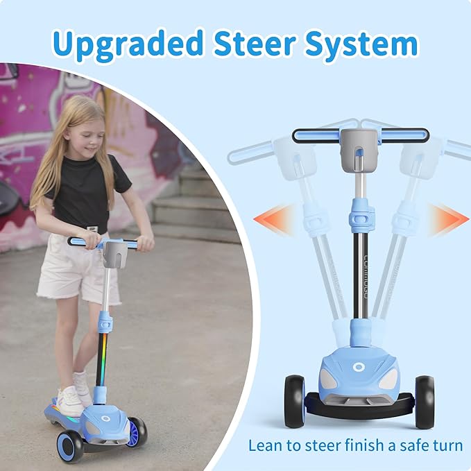 - Ultra-Safe & Stable:The three-wheel design provides superior balance and stability compared to traditional two-wheelers, giving parents peace of mind. The lean-to-steer mechanism helps kids develop coordination and control, while the soft rubber handle grips and low center of gravity make every ride smooth and secure