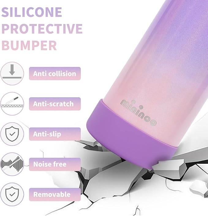- 【Protection From Scratches and Wear and Tear】We provide high quality non-slip silicone cover to prevent scratches and dents on the bottom of the water bottle stainless steel from accidental drops, prolonging its lifespan, yet protecting your furniture from scratches. The silicone boot is easy to install and can be removed for cleaning
