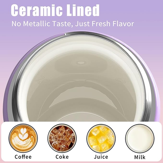 - 【Long-Lasting Insulation, Ceramic Freshness】Made of double-wall vacuum insulation and premium 18/8 food-grade stainless steel with ceramic-lined interior to preserve flavor and ensure liquids never touch metal for a pure, clean taste with every sip and ideal for serving various beverages such as carbonated beverage, juice, milk, and more