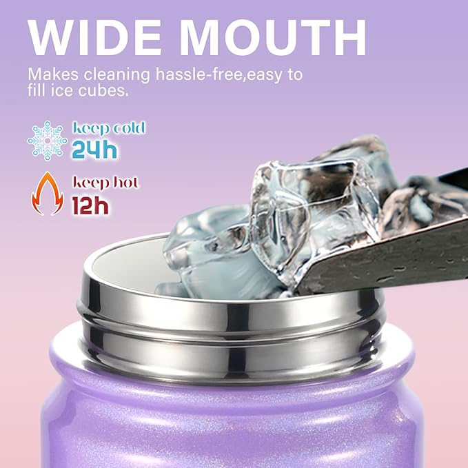 - 【Sparkling Rainbow Finish Kids Love】Covered in a shimmering rainbow paint with added glitter, this 16 oz colorful insulated water bottle is a fun and eye-catching choice for girls and boys alike. A great Birthday, Back to School, and Christmas gift!