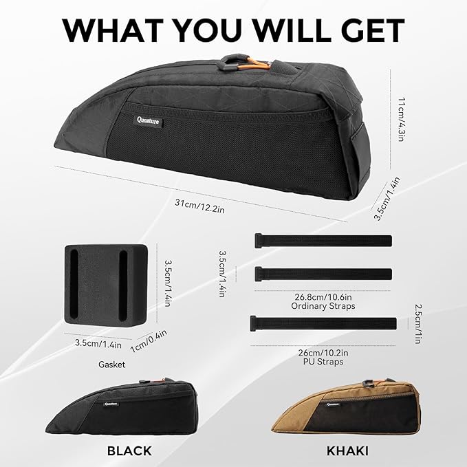 - Designed for Cycling: The bike storage bag features a streamlined design. The entire shape is both narrow and long, which not only increases storage space but also ensures that your legs won't touch the bag when you ride freely. The net pocket design on both sides of the cycling accessories makes it more convenient for you to take it out. The bottom of the bike frame bag is equipped with a PP support plate, which helps to stabilize the bag and prevent it from deforming.