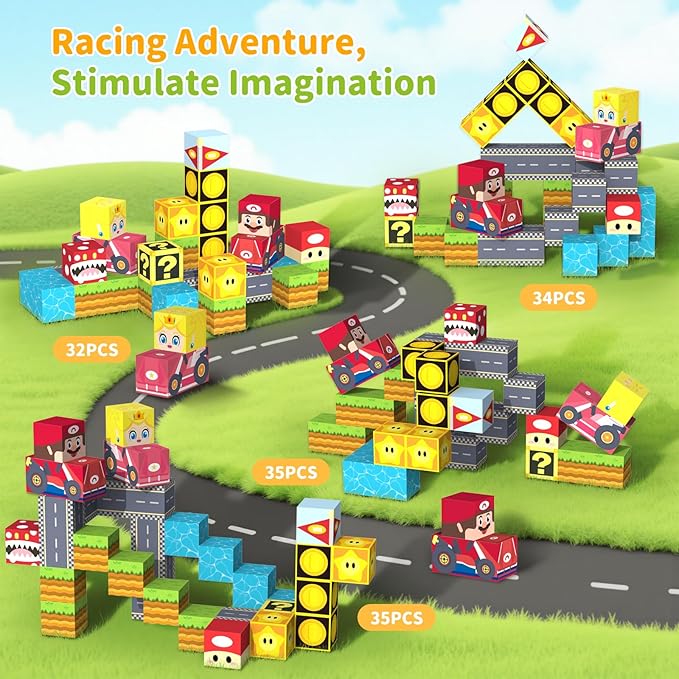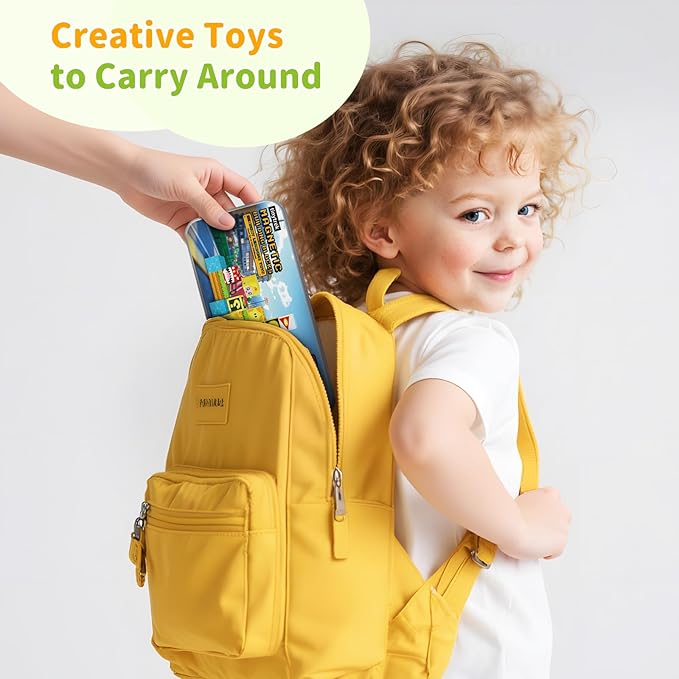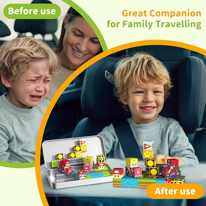 - Portable and Travel Companion: This compact and lightweight magnetic building block can be easily packed into a backpack, turning any iron surface into a play area. These magnetic building cubes can be stuck to refrigerators, whiteboard or garage doors, allowing children to stack and build creatively anywhere
