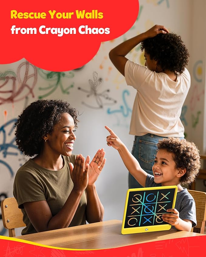 TEKFUN LCD Writing Tablet Doodle Board, 12inch Colorful Drawing Tablet Writing Pad, Kids Travel Essentials, Toddler Toys 6 7 8 Year Old Girls Boys (Yellow)
