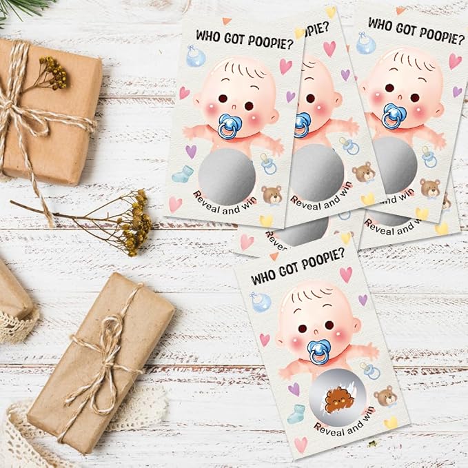 50 Pcs Who Got Poople Themed Scratch off Game Cards, Dirty Diaper Baby Scratch Off Lottery Tickets, Gender Reveal Games Supplies for Birthday Baby Shower Party, Raffle Tickets