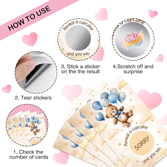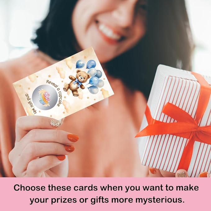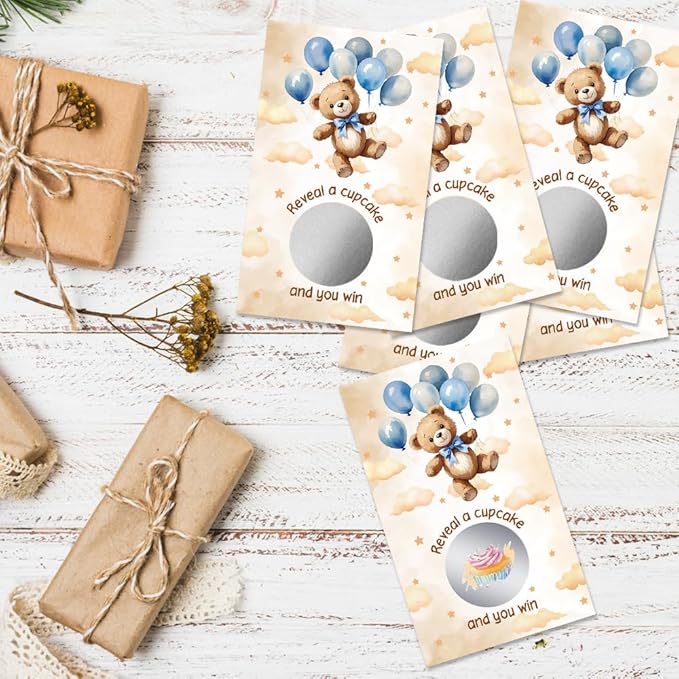 50 Pcs Bear Birthday Scratch off Game Cards, Ideal for Babies Shower Birthday Party Lottery Game Group Games Family Activity, Baby Shower Activity and Idea, Baby Shower Party Supplies
