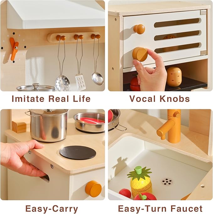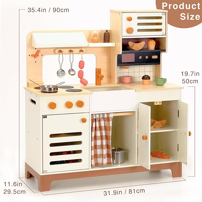 - XL Space for 2–3 Little Cooks - A 31" L × 12" W counter and 35" high sink wooden kitchen let kids chop, stir and “wash up”shoulder to shoulder, sturdy base keeps the big kids kitchen steady during wild play