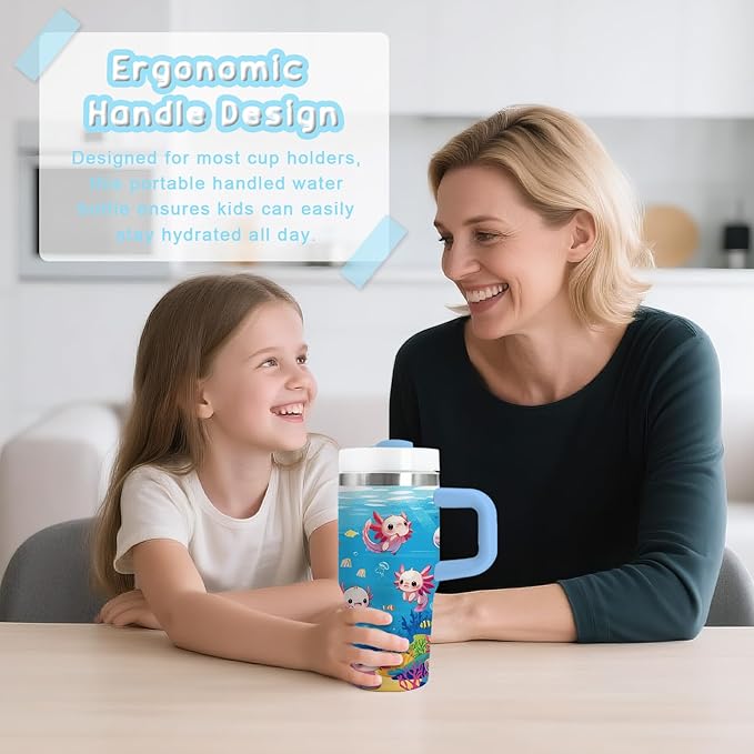 Axolotl Gifts for Girls - 14oz Blue Kids Axolotl Tumbler with Handle and Straw, Stainless Steel Insulated Water Cup, for Sport, School, Travel - Axolotl Lovers Gift for Children Birthday Gift Cup(1pc)