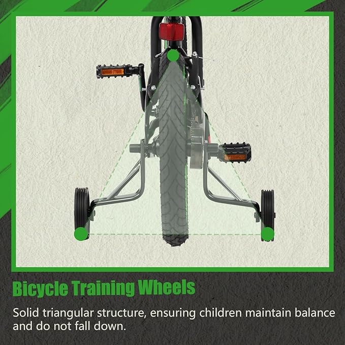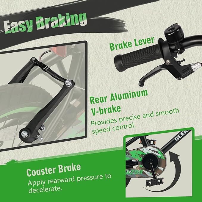 - 【DUAL BRAKE SYSTEM】This kids bicycle is equipped with coaster brake and front V-brake, providing reliable braking performance, making it easy for even beginners to control the speed of the bike, which can ensure a safe ride and help cycling learning.