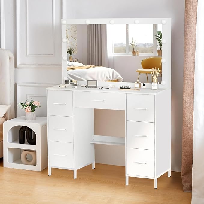 - Perfect Bedroom Storage: Our large vanity features 7 drawers, ideal for storing electronics, books and bags. Additionally, the generous tabletop provides ample space for makeup brushes, lipsticks, and curling irons, ensuring your beauty essentials are neatly organized and within reach.