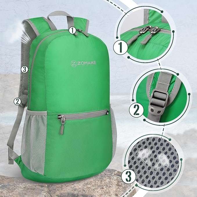 - GET THE AWARD-WINNING ZOMAKE ULTRA LIGHTWEIGHT FOLDABLE BACKPACK: With the light performance and high quality of our ZOMAKE ultra lightweight backpack,we have provided high-quality services to 500,000 people in the world and received praise from many people.I believe that our light foldable backpack will be the perfect partner in your life.You can accompany you on foot,vacation,shopping,cycling,and exercise!