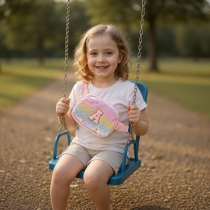 Fanny Pack for Girls,Birthday Easter Gifts,Chenille Initial Letter Girls Crossbody Bag,Preppy Teen Belt Bag for Graduation Travel Gifts,Cute Sequin Trendy Stuff.Pink-T