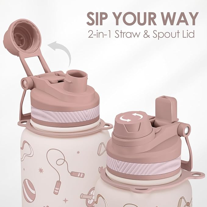 SANDJEST Workout Stainless Steel Water Bottle with Strap 32oz, Insulated Bottles with Straw and Spout Lid for Gym Sports Travel Outdoor, Gifts for Women Girls Birthday Christmas