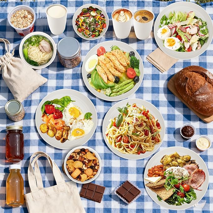 - Versatile for Any Occasion: Whether you’re hosting a party, going on a picnic, camping, or just having daily meals at home, school, or the office, this dishes set works everywhere. The sizes of these plastic plates are suitable, and they’re lightweight enough to take on trips. Ideal for indoor and outdoor use!