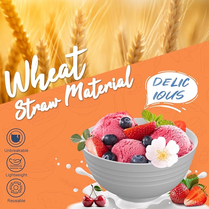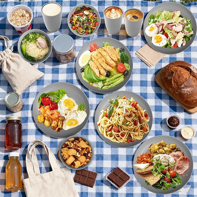 - Material & Durability: Made of premium wheat straw fiber and plastic material, this BPA-free dish set ensures safe daily use. Unlike porcelain or ceramic, its strudy build withstands drops, making it ideal for homes with kids and elders and outdoor uses.