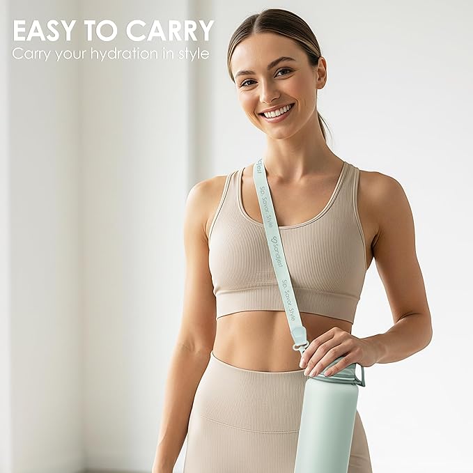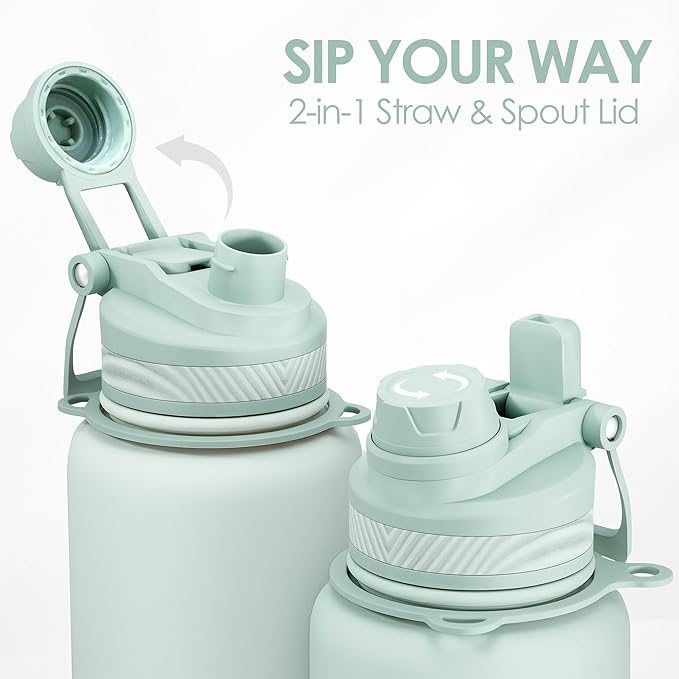 SANDJEST Stainless Steel Water Bottle with Strap 32oz, Insulated Bottles with Straw and Spout Lid for Gym Sports Travel Outdoor, Gifts for Women Girls Birthday Christmas (Green)