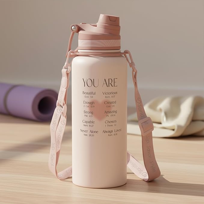 Christian Stainless Steel Water Bottle with Strap 32oz, Insulated Bottles with Straw and Spout Lid for Gym Sports Travel Outdoor, Gifts for Women Girls Birthday Christmas