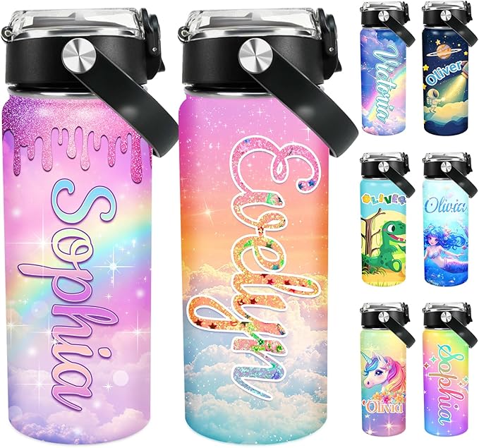 - 【Unique Back to School Birthday Gifts for Kids】In the new semester, every child is looking forward to having new stationery and backpacks, of course Every child deserves a personalized double-layer insulated water bottle, perfect for any season, with 10 vibrant designs. such as sequins, mermaids, dinosaurs, jewelry, astronauts, etc. Click "Customize Now" to give your child a unique.
