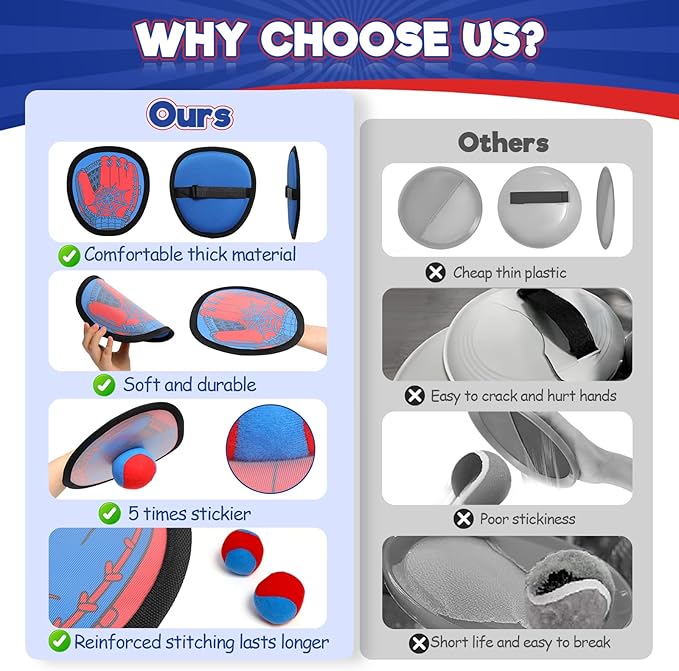 - 【PERFECT GIFT FOR KIDS】With fashion spider element design, this classic baseball catching ball game set deeply loved by children, and it’s the best gift for 3 4 5 6 7 8 9 10 11 12+ year old boys and girls on birthday, Christmas, Children’s Day, Halloween, holidays, and family gatherings. Explores indoor and outdoor fun, Providing endless entertainment for your kids and family, or friends.