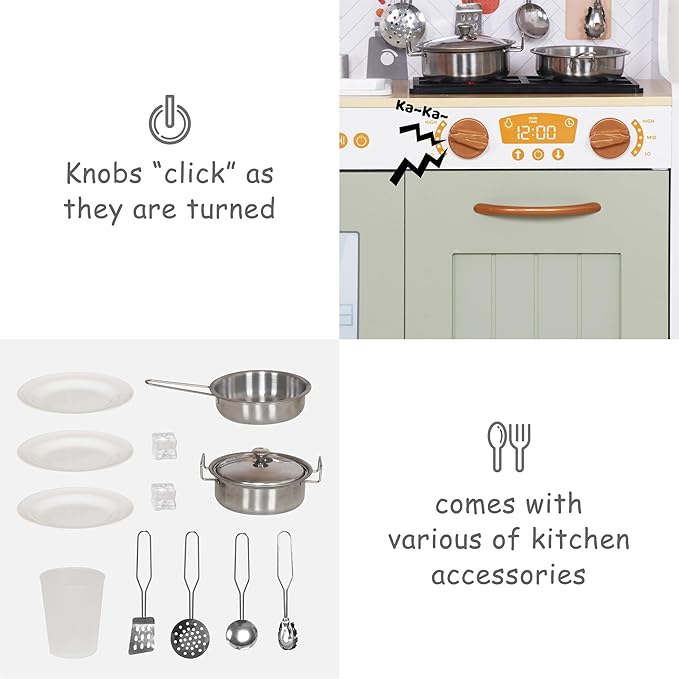 - 🎁Geat gift- Not only provides fun playtime for young children, but is also important for education. The perfect play kitchen for 3-8 year olds is ideal for creative role play toy and the perfect gift for kids.
