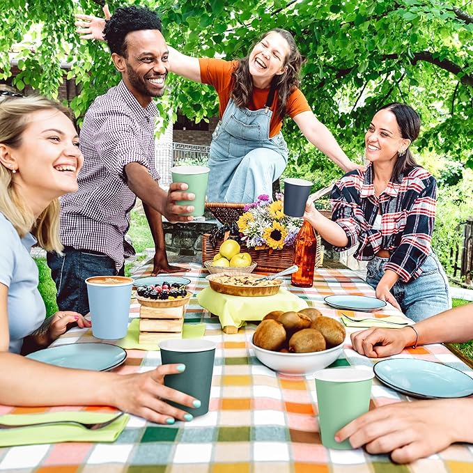 - Ocean-inspired colors: our disposable paper cups feature a refreshing palette of seascape blues and greens; each cup showcases its own unique shade, inspired by the sea and sky, creating a soothing and elegant atmosphere; this color theme adds an inviting touch to any event, making gatherings truly memorable