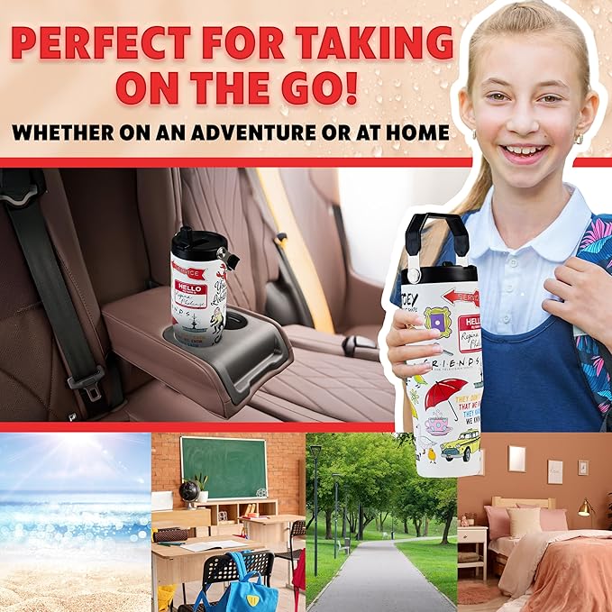 Get Trend Friends Tumbler with Straw 30oz Kids Teens Adults Insulated Cup with Lid Handle Travel Mug Cups with Lids for Office Gifts (White Friends)