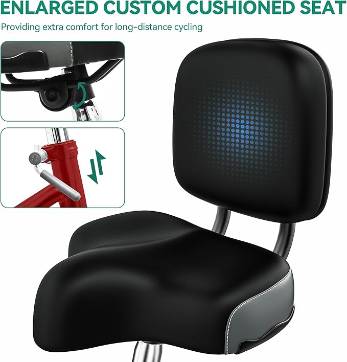 - Custom Seating: Structured with an enlarged, custom seat with a supportive backrest and adjustable height, this cruiser bike offers you the ultimate riding comfort; It accommodates riders of various heights so that everyone gets a personalized fit
