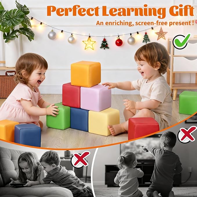 - Ultra-Safe & Durable Daycare Toys: Designed for active little builders! Made with non-toxic, toddler-safe foam and tear-resistant PU leather, these stackable blocks are soft for tumbling and tough for daily play. A hygienic choice trusted for daily toys and preschools.